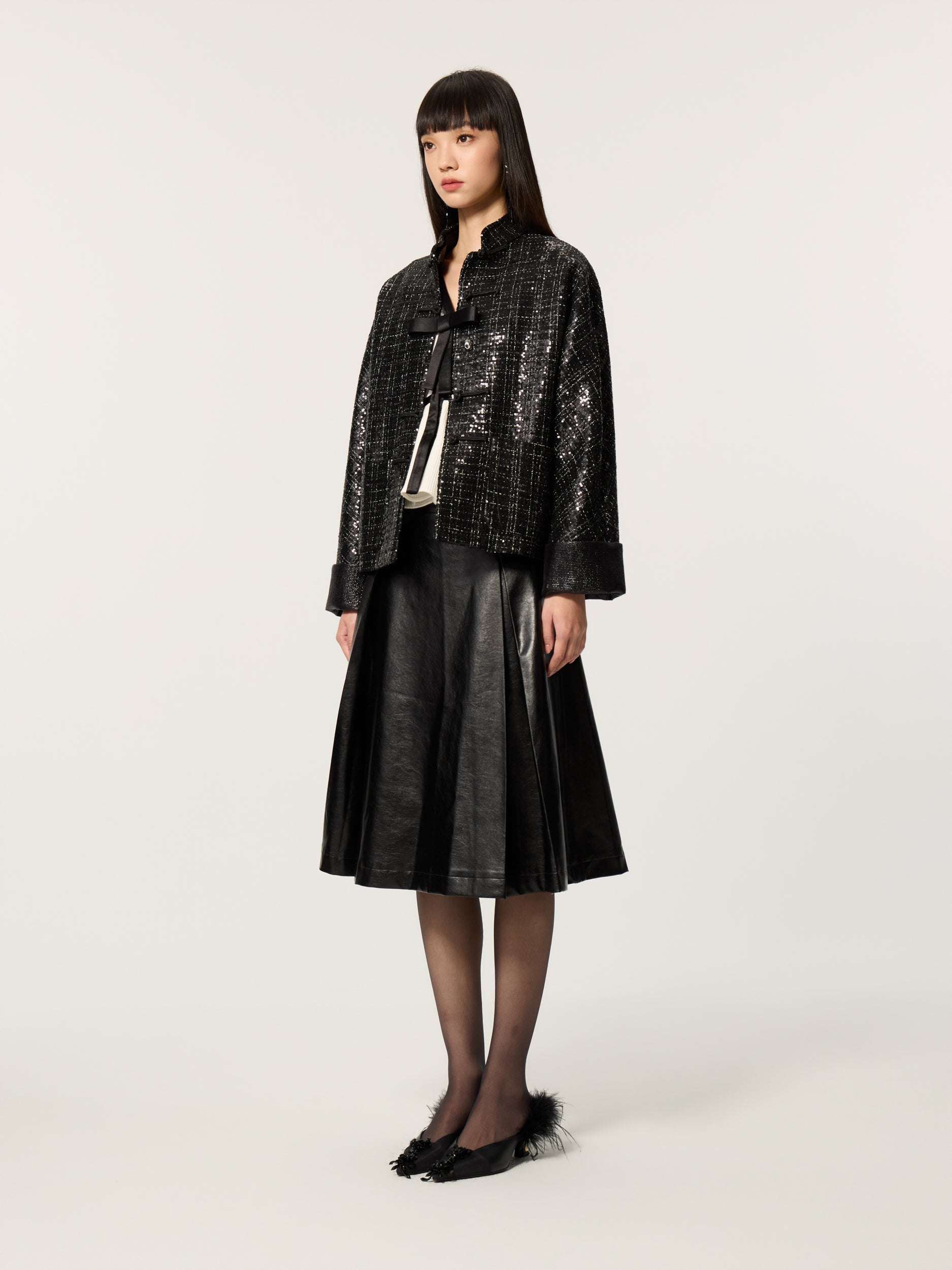 Color-Block Mandarin Collar Tang Suit Blouse